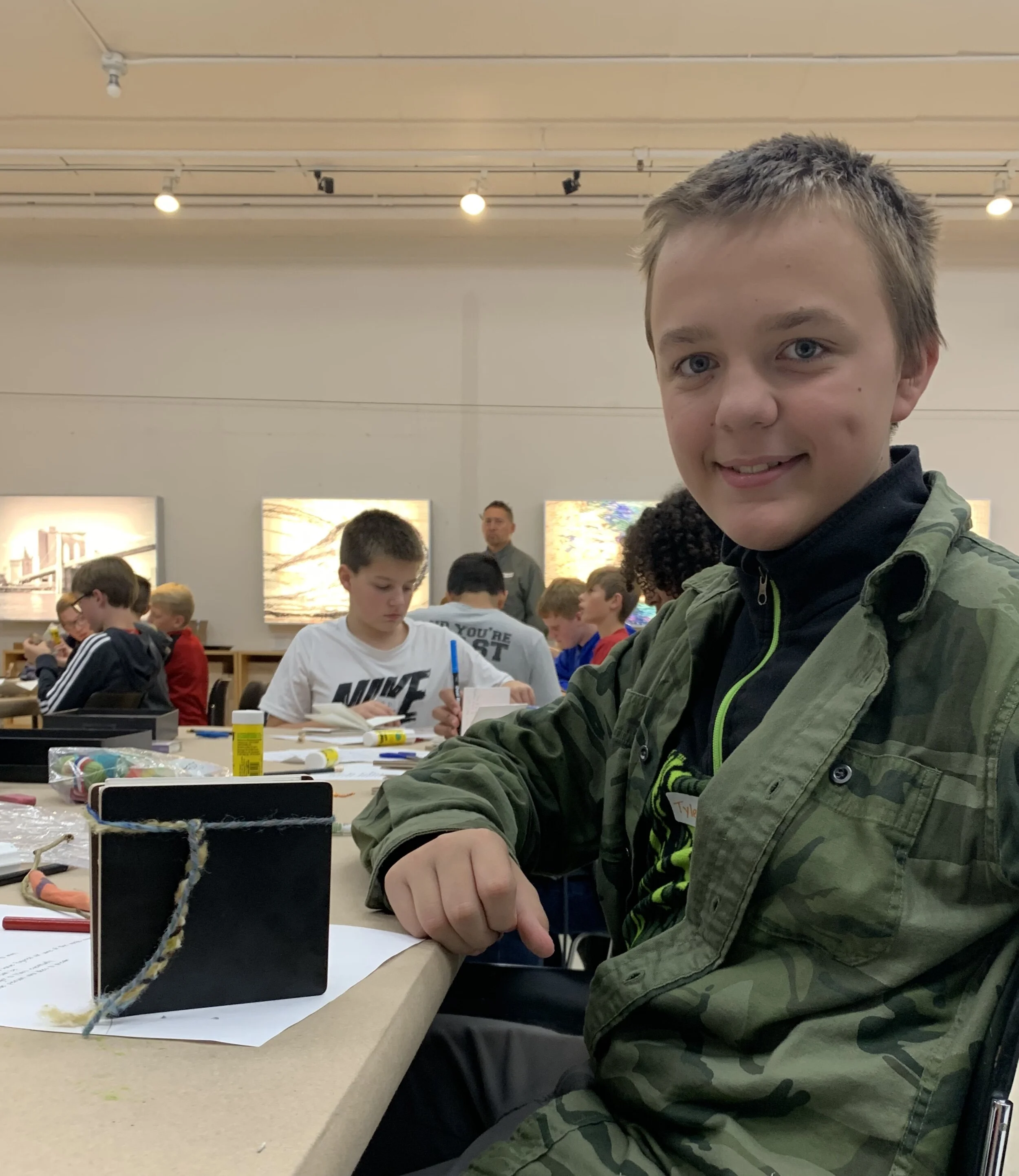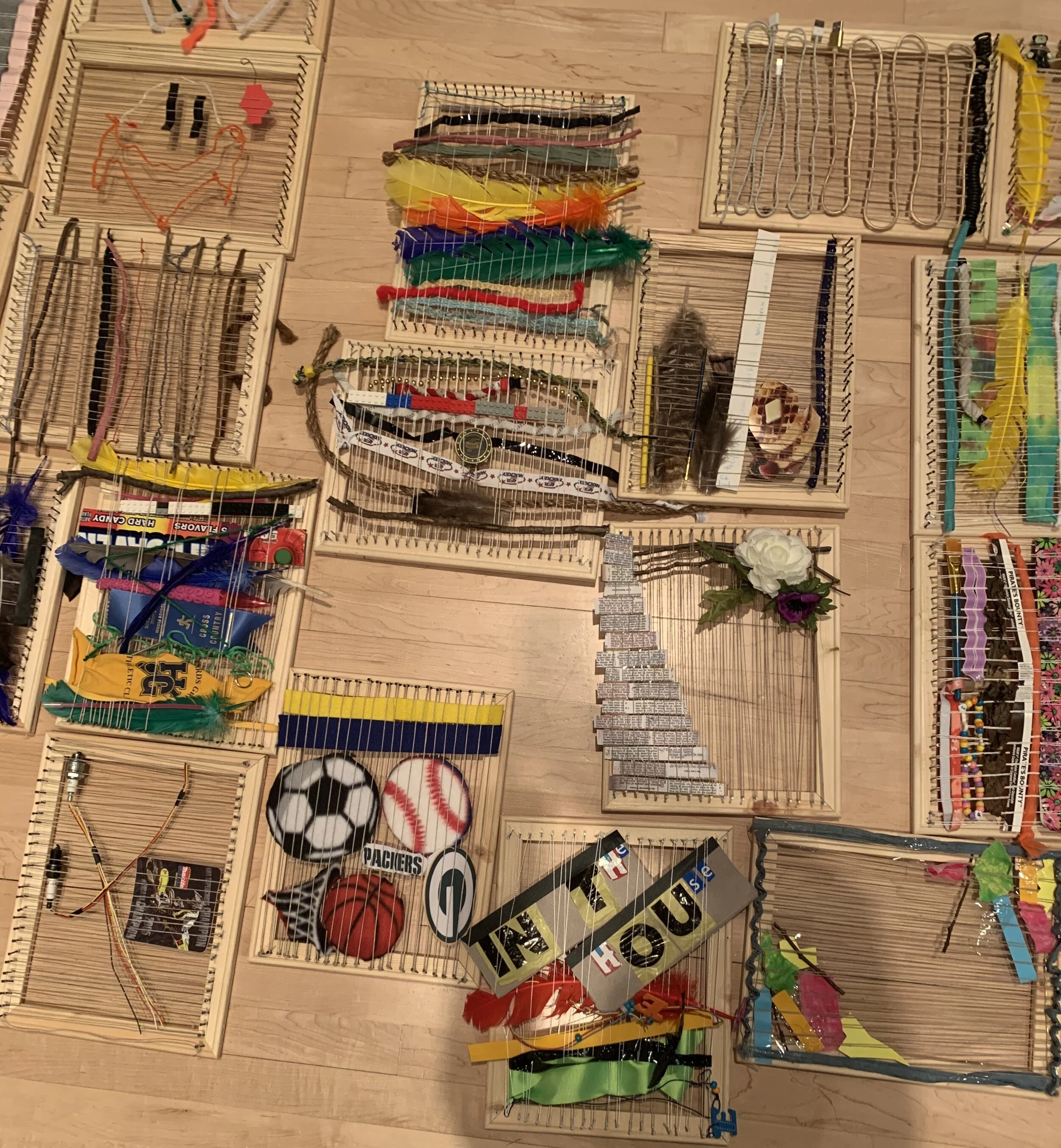 5 Purple Oranges sponsored a Teacher Fellowhip for the Howards Grove Middle School to create lesson plans for the Lenore Tawney exhibition series, Mirror of the Universe. The students spent a day at the Arts Center, viewing the textile works of Lenore Tawney, then creating weavings using meaningful, personal items. Then the students physically connected their art in a unique design after creating personal connections. Teachers also provided a cross-curricular lesson incorporating the language arts classroom, where students designed little books of art containing their “I Am” statements, inspired by Lenore Tawyner’s life. Student work will be displayed in the Community Gallery in 2020.