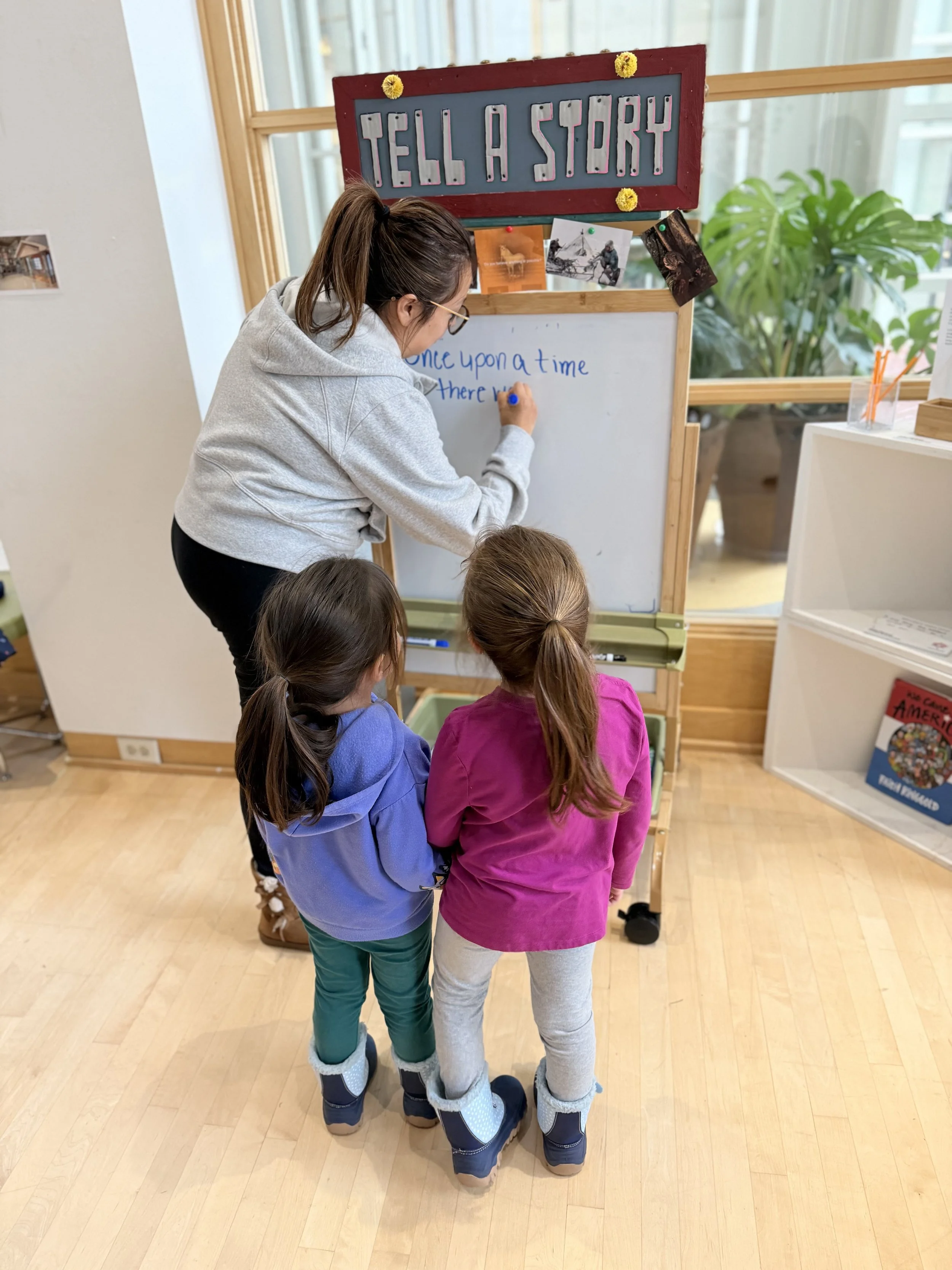 Our story station is a place for families to share their feelings in sentence form of pieces of art. Each family adds to the story to create something quite magical. The story station holds books which relate to current exhibits that children and families can read . You will find the Tell a Story board in the John Michael Koehler Arts Center Social STUDIO, (or in the galleries if you’re on a class field trip).